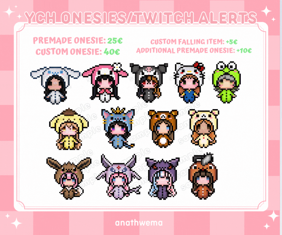 ❥ Have the onesie ears animated to wiggle: +5€❥ You can request a head icon version, Twitch emote sizes, 1-color background version and 2 static versions for free